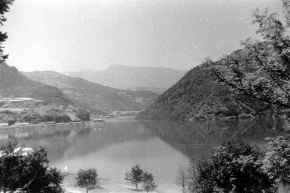 Als wir aus der Schlucht herauskamen, tat sich vor uns ein hügeliges und bergiges Land auf. Die Berge wurden nach einiger Zeit aber wieder höher, und das Gesamtbild der Landschaft hatte etwa den C harakter unserer Alpen. Bäume und Almen fanden sich hier, und der Karst war völlig verschwunden. Wir waren nach Bosnien-Hrezegowina gekommen. Sehr viele Mohammedaner sah man hier. Die Frauen trugen Rockhosen, die um die Beine herum geschlossen waren, und ihr Kopf war in ein Tuch gegen die Sonne eingehüllt. Die Männer trugen sich nach oben sch verjüngende rote Kappen. An einem großen Kraftwerk vorbei und durch einen Tunnel führte die Straße zum Jablanica-See (Abb. re.). Sehr weit erstreckt er sich mit seinem grünen Wasser in die Seitentäler hinein. Nachdem wir zwei weitere Tunnel und einige Baustellen, wo man damit beschäftigt war, die Böschungen abzustützen, passiert hatten, kamen wir nach Konjic.