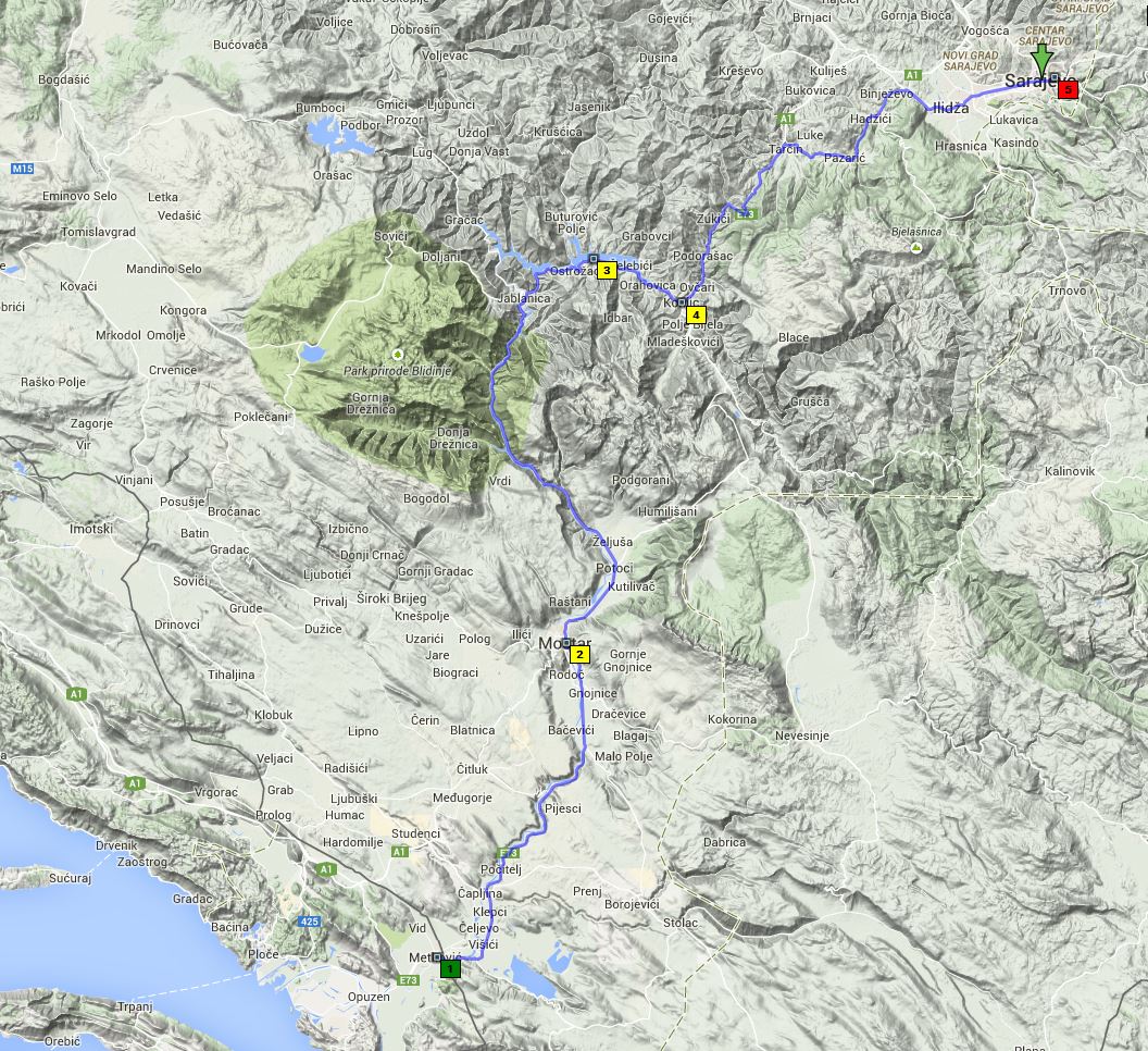 Freitag, 27.7.1956 (4340 — 4535 = 195 km), Metkovi - Sarajevo