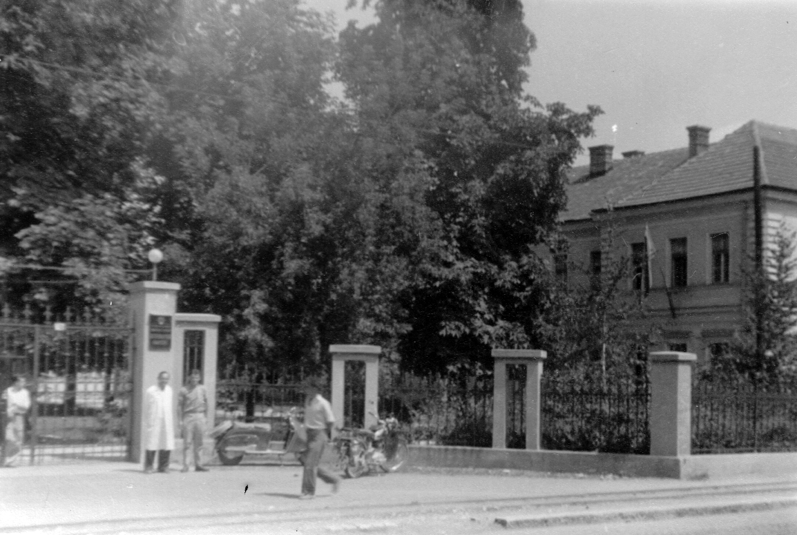 Anschließend haben wir uns dann die tierärztliche Fakultät angesehen (Abb. re.). Sie besteht aus einem verhältnismäßig modernen Gebäude in der Stadt, in dem sich die vorklinischen Disziplinen (außer Anatomie) und die Bakteriologie befinden, und aus den etwa 4 km entfernt liegenden Kliniken. Die Kliniken sind ähnlich wie bei uns eingeteilt, sind aber viel kleiner und viel primitiver eingerichtet. Wir wurden sehr freundlich von einem Assistenten, Dr. Smircek, herumgeführt und haben so einen kleinen Überblick bekommen. Er erzählte uns auch, daß die Ferien in Jugoslawien anders als bei uns liegen, und zwar von Anfang Januar bis Anfang Februar und von Anfang Juni bis Ende September. Die Fakultät hat etwa 500 Studenten. Nach dem Examen gehen die Studenten ähnlich wie bei uns als Praktikanten heraus, müssen es aber nicht. Ihren Doktor machen sie schon vorher. Auf dem Wege durch die Kliniken wurden wir dem parasitologischen Professor vorgestellt, der einen sehr einfachen Eindruck machte. Er zeigte uns sehr stolz sein Institut, das aber schlecht eingerichtet war. Recht modern war dagegen das Institut für Röntgen und Elektrotherapie.