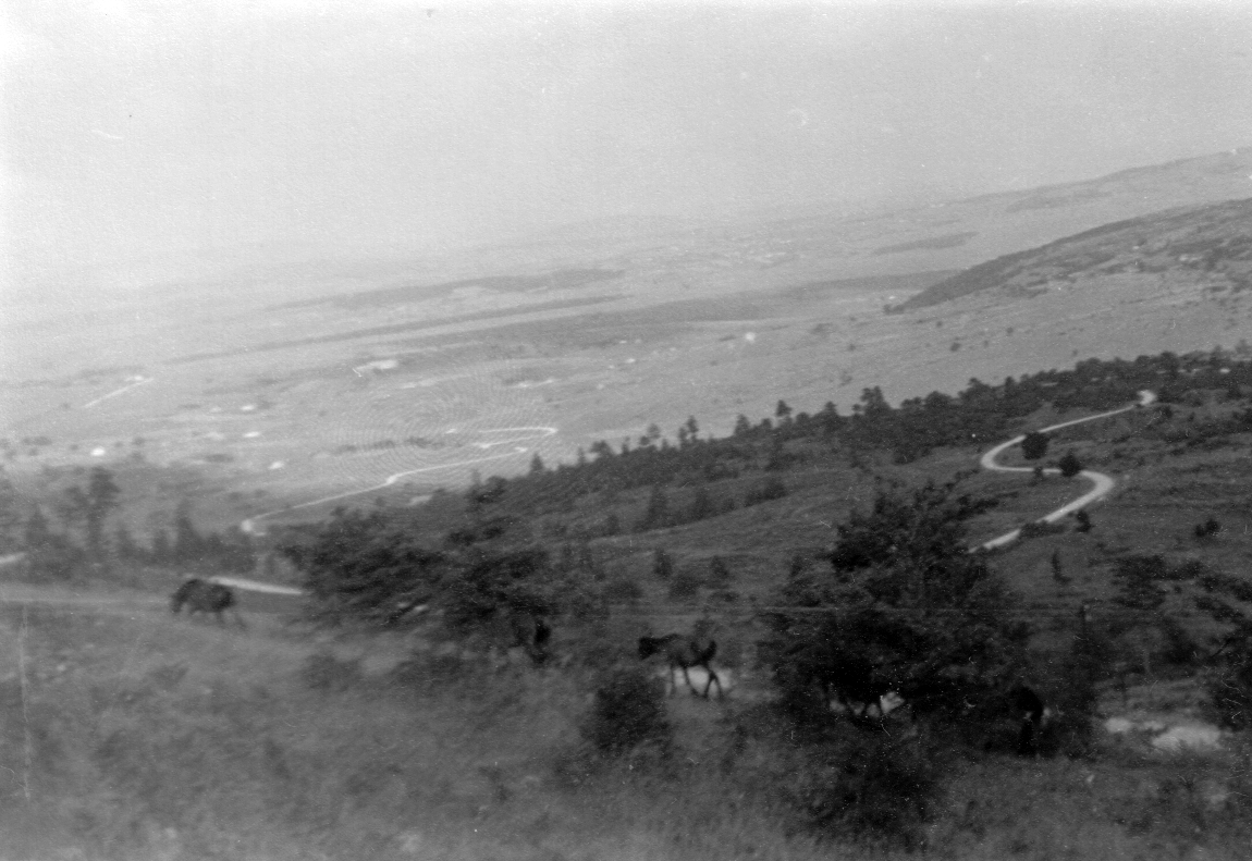 In Ljubogosta hatten wir uns vorher verfranzt und sind in falscher Richtung auf einen Berg gefahren. Diese Tatsache allein ist nicht bemerkenswert, aber hier war für uns ein historischer Augenbllck, da ich die erste Panne hatte. Wie sich später herausstellte, hatte ich einen dicken Nagel im Schlauch. Den Schaden konnten wir aber in einer halben Stunde beheben, da ich ein vollstandiges Ersatzrad mithatte und das kaputte nur auszuwechseln braucht; In dieser wunderschönen Gegend wechseln Waldungen (Kiefern, Fichten, Eichen, Buchen) mit Wiesen. die hier sehr häufig waren. Felder gab es in dieser Gegend, besonders in den höheren Lagen, wenig. Es wurde viel Heu geworben. Auch Tiere findet man hier in großer Zahl. Sie werden oft morgens herausgetrieben, weiden den ganzen Tag frei herum und kommen abends bisweilen alleine wieder ins Dorf zurück.