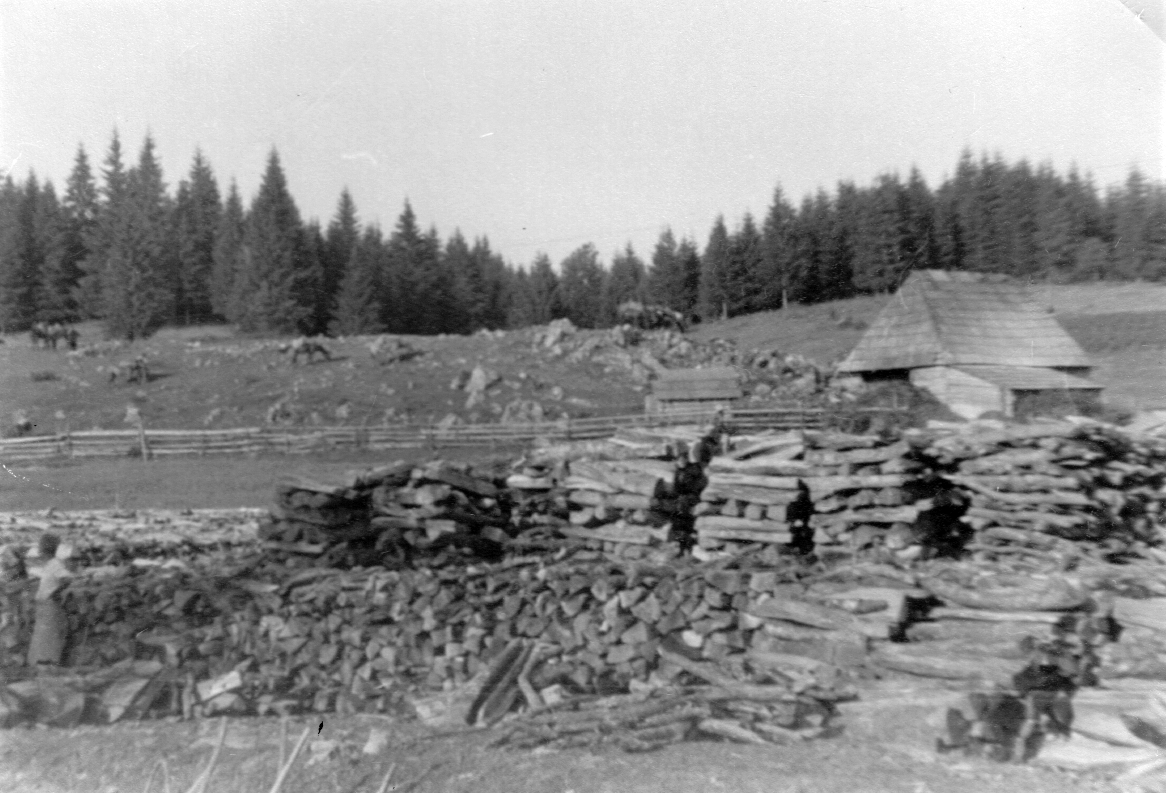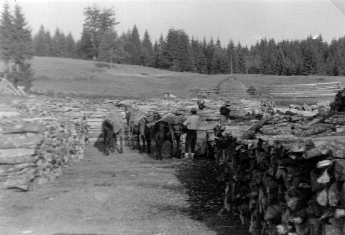 Vom Romanja-Gebirge aus ging es in etwa 1000m Höhe auf einer schönen Hochebene mit viel extensiver Weidewirtschaft und dazwischen Waldstücken zum Javor-Gebirge. Man merkte kaum, daß man hier 1152m hoch war, da es vom Romanja-Gebirge aus nicht wieder herunterging. Der Wald war hier überall noch in sehr urwüchsigem Zustand. Die umgeworfenen und abgebrochenen Bäume lagen herum und schienen nicht verwertet zu werden. Durch das rauhe Klima und die kalten Winter sind die Spitzen oft abgebrochen oder kahl. An einzelnen Stellen wurde auch Holz geworben (Abb. re. oben und unten) , das von Maultieren und Pferden aus dem Gebirge an die Straße getragen wurde. Ein Zeichen für das kältere Klima und vielleicht auch der größeren Fruchtbarkeit sah man hier viele Pferde, die in Dalmatien und im wärmeren Teil Bosniens völlig vom anspruchsloseren Esel verdrängt waren. Die Pferde sind hier sehr klein, müssen aber zäh sein.