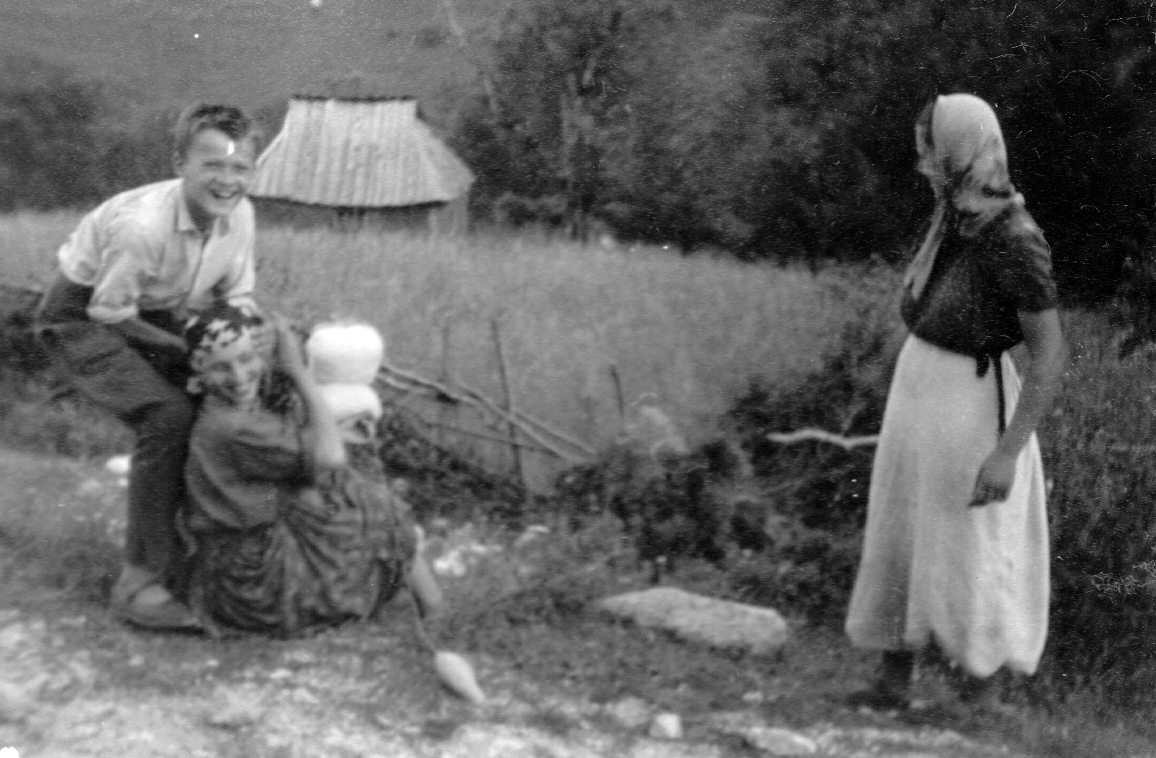 Abends haben wir uns mit dem Wirt, Duman Petkowitsch, seinem Vater und den drei Kindern unterhalten. Das eine Kind hatte an jeder Hand doppelte Daumen. So sieht man hier viele Mißbildungen, allerdings besonders an den Beinen (zu kurz, krumm, humpelnd u.s.w.). Es kommt wohl daher, daß die Frauen schwer arbeiten müssen und zu wenig Ruhe haben. Die Leute sind alle sehr zerlumpt, und die Sachen bestehen fast nur noch aus Flicken. Die Straße von Sarajewo bis hierher war recht gut für jugoslawische Verhältnisse. Die Ausbesserung der Straßen ist kein großes Problem, da nur sehr wenige asphaltiert sind. Man wirft einfach Splitt und Schotter in die Löcher. Für diese Arbeit findet man an den Fremdenverkehrsstraßen in bestimmten Abständen Straßenwächter. Der Schotter wird aus großen Steinblöcken, die am Straßenrande von Steinklopfern zerschlagen werden, hergestellt. In etwas fortgeschritteneren Gegenden, z. B. in Städten, wird diese Arbeit von Motorsteinmühlen übernommen.