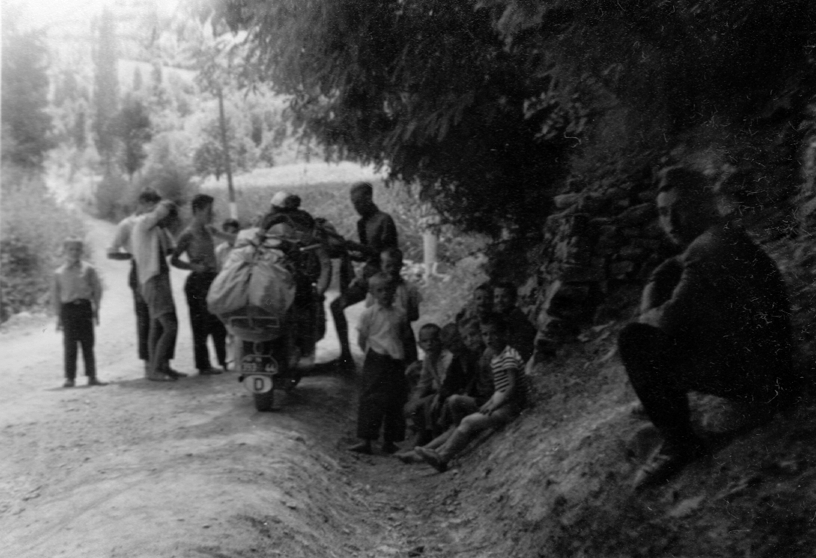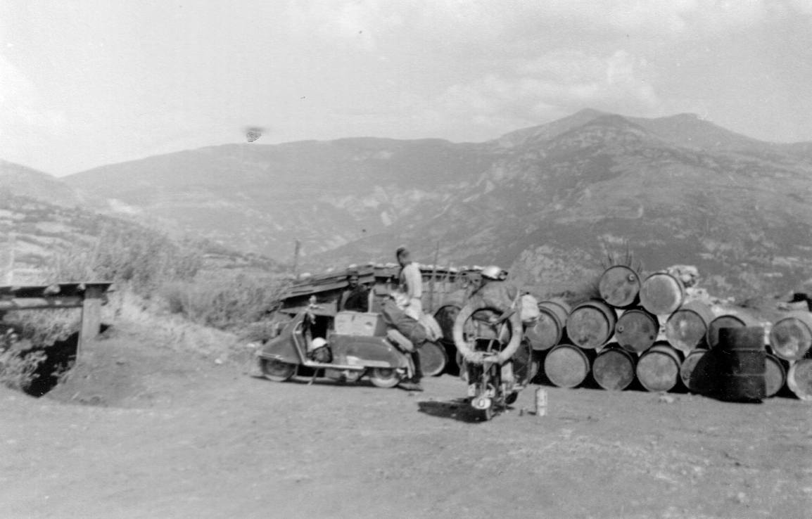 Wolfgang hatte mehrmals Ärger mit dem Vergaser oder der Zündkerze, die Maschine wollte jedenfalls nicht mehr recht. Außerdem ist an einer starken Bodenwelle, wo wir ein kleines Stück durch die Luft flogen und dann recht hart aufkamen, bei ihm eine Schraube am Schutzblech ober halb der geschweißten Stelle abgerissen. Ich mußte jetzt wieder einen Teil seines Gepäcks auf meinen Roller nehmen, damit nicht noch mehr passierte.
