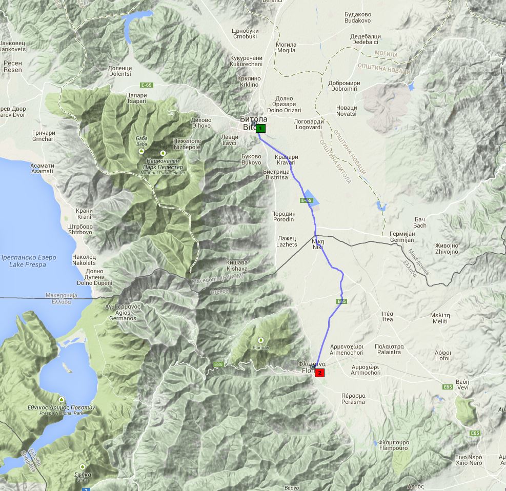 Dienstag, 28.08.1956 (Reststrecke Jugoslawien: 8684 - 8825 = 141 km), Bitola- Florina