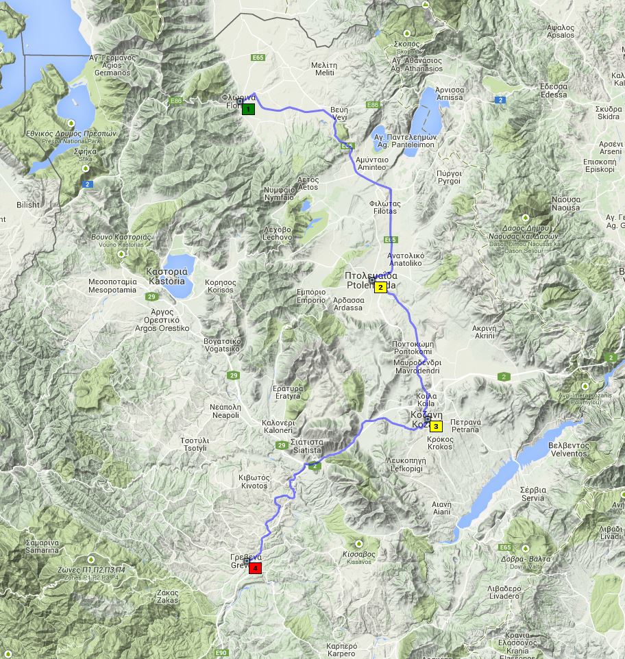 Nachdem man uns so etwas aufgemuntert hatte, bedankten wir uns und fuhren auf der Straße wieder zurück. Ohne große Anstrengung fanden wir dann auch die richtige Straße und kamen bald nach Grevena. Von hier aus ging es allmählich aufwärts und über das Chasia-Gebirge.