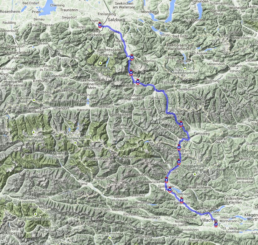 Nach dieser kleinen Ruhe ging es wieder auf die Autobahn, auf der wir nach 5km Fahrt zur Bundesgrenze gelangten. Die Abfertigung an der Grenzstation ging recht schnell und ohne Gepäckkontrolle, ebenfalls auf der österreichischen Seite. Von dort fuhren wir südlich an Salzburg vorüber und trafen nach kurzer Zeit zu unserem Entsetzen wieder auf eine Grenzstation. Wie sich bald herausstellte hatten wir uns verfranzt und waren wieder an die deutsch- österreichische Grenze gekommen. Wir machten also wieder kehrt und fanden dann auch die richtige Straße nach Villach.