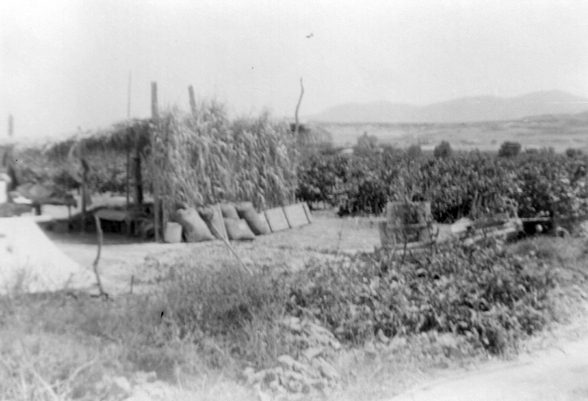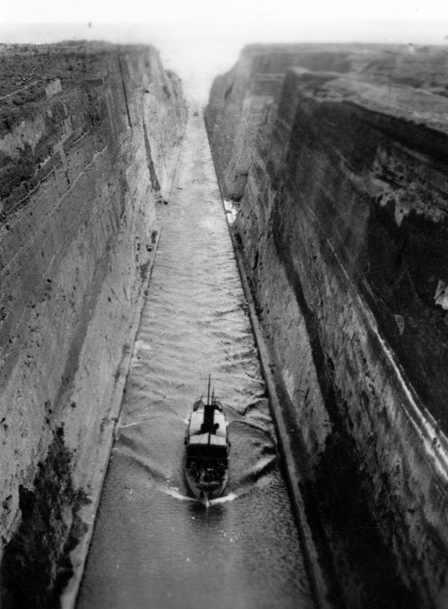 Von Altkorinth aus fuhren wir hinab in die Ebene von Korinth, in der herrlich reifer Wein stand (Abb. re.), den wir reichlich gekostet haben. Neukorinth ist keine sehr große Stadt und liegt am westlichen Anfang des Kanals von Korinth, der etwa 6500m lang ist. Von Korinth aus fuhren wir dann auf die Höhe des Isthmus und auf einer Brücke hoch über den Kanal hinweg, der hier 80m unter uns lag. Die Wände sind sehr steil, so dass man den Eindruck eines tiefen Schachts hat. Auf der Brücke war das Photographieren leider verboten, wie überhaupt unverständlich oft in Griechenland.