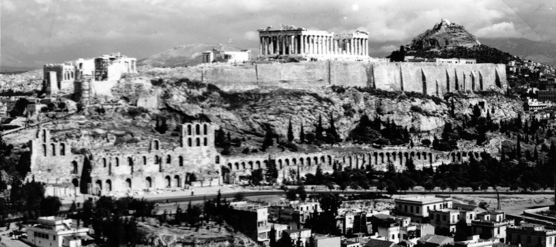 Von der Akropolis aus hat man einen wunderschönen Ausblick auf die ganze Ebene von Athen, die rings von Hügeln und Bergen umgeben ist, auf denen nichts wächst und die so eine natürliche Grenze für den Stadtstaat bildeten. Sehr gut kann man auch den Piräus und das Meer sehen.