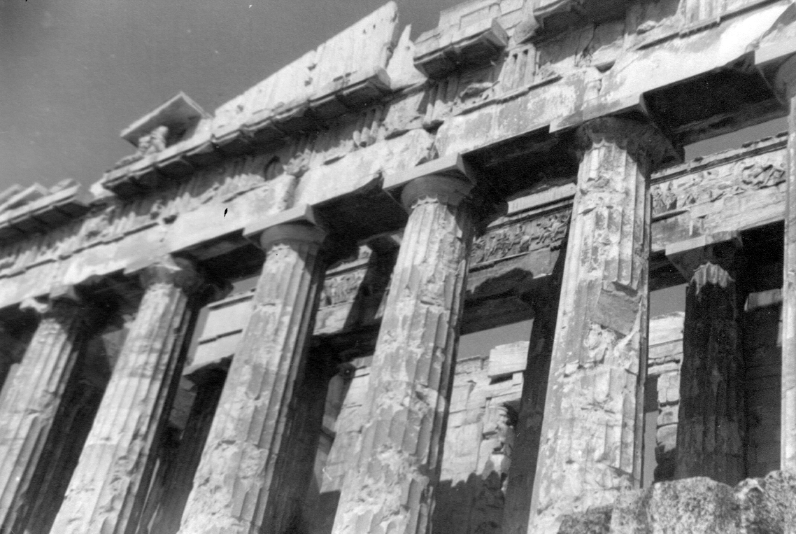 14 Uhr habe ich mich mit Wolfgang auf der Akropolis getroffen, wo wir uns verabredet hatten. Die Akropolis hat auf mich gleich beim ersten Anblick einen gewaltigen Eindruck gemacht. Über einen Treppenaufgang, der von Perikles anders geplant war, aber wegen der Opposition nicht verwirklicht werden konnte, gelangt man zu den Propyläen, die ein riesiges Bauwerk darstellen. Eine ungeheure Wucht liegt in den Bauten der Akropolis, die bei den sonst kleinen Wohnhäusern des antiken Athens nur aus einer großen Dankbarkeit gegenüber den Göttern zu verstehen ist.