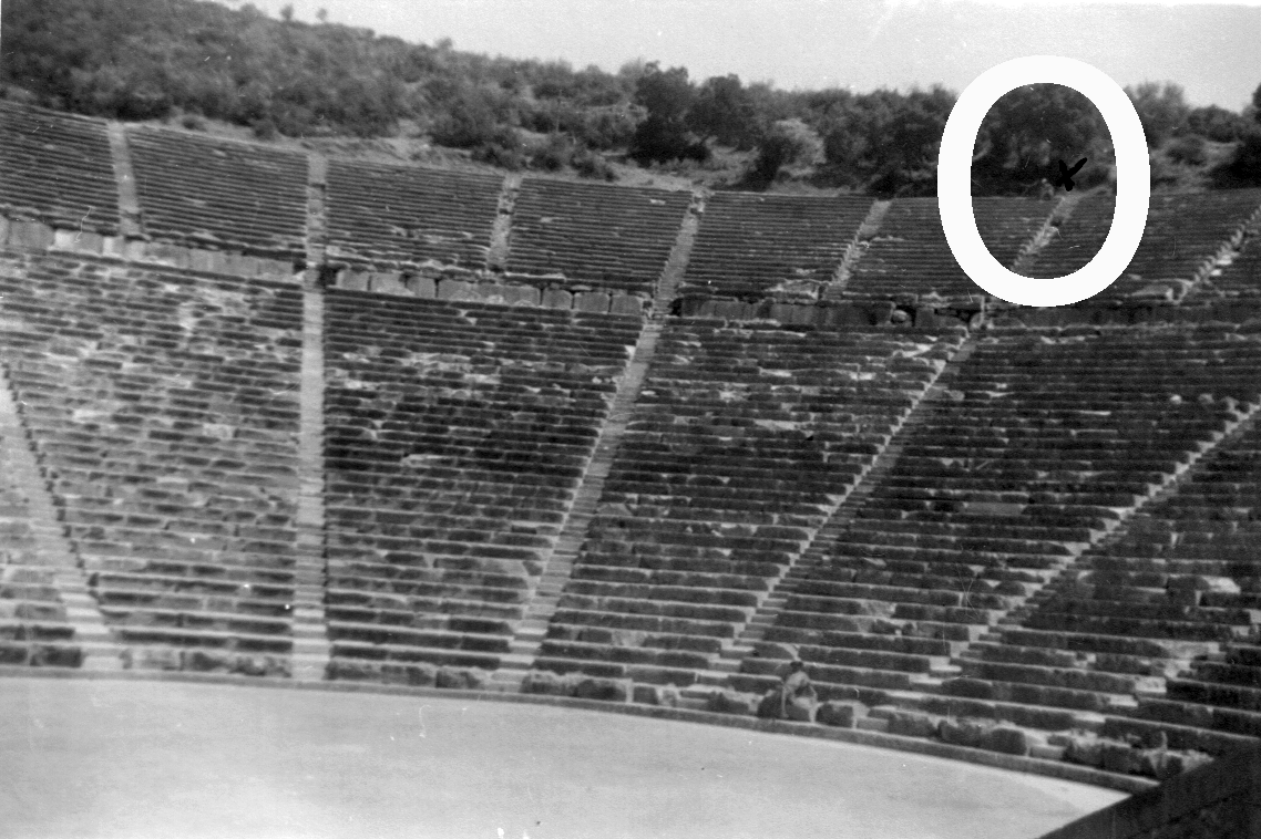 Die Berge sind hier völlig trocken,und es wird wenig Ackerbau betrieben. Nach der grünen Ebene von Argos wirkte es hier besonders trostlos. Etwa 8 km von der Hafenstadt Epidauros entfernt liegt in einer von Bergen umgebenen Mulde das Heiligtum des Asklepios‚ dessen Hauptbauten aus dem 4.Jahrh. v. Chr. stammen.