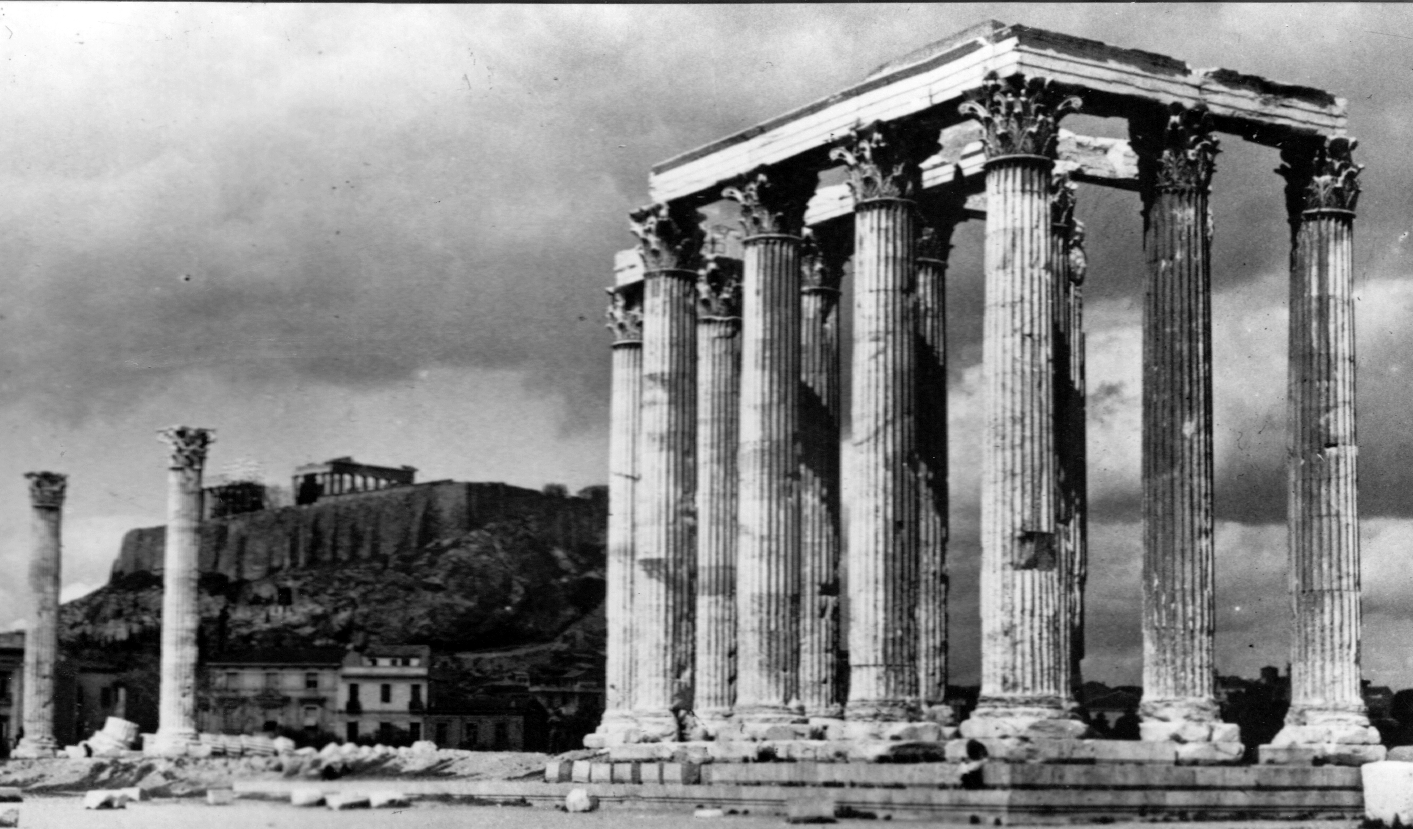 Angefangen wurde der Tempel von dem Tyrannen Peisistratos, der ihn aber enicht vollenden konnte. Antiochus von Syrien, einer der reichsten Fürsten des Ostens, nahm die Arbeit wieder auf, starb aber ebenfalls vor der Vollendung. Erst Hadrian konnte den Bau zu seinem Abschluss bringen.