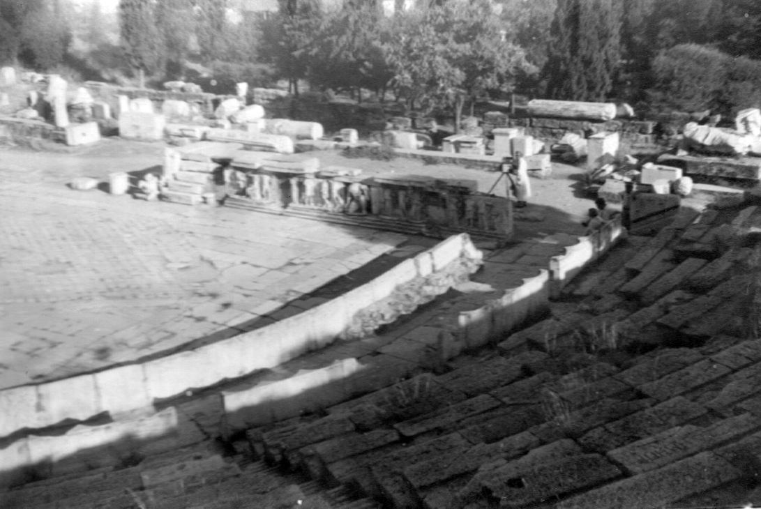 Der Sieger bekam einen Dreifuß, der dann meist zu Ehren des Gottes in der Nähe aufgestellt wurde. So besitzen zwei korinthische Säulen hoch am Felsen direkt unterhalb der Akropo1ismauer ein dreieckiges Kapitell für die Dreifüße. 17000 Zuschauer fasste das Theater. Später wurde es zu einer Tierhetze umgebaut, als man derbere Vergnügungen und Entspannung brauchte. Ein Teil des Frieses am Bühnenunterbau ist noch gut erhalten.