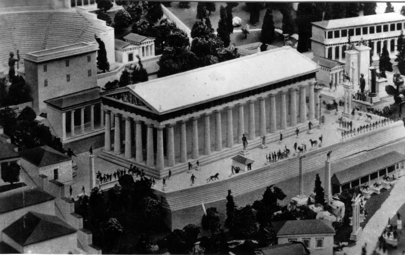 Vor dem Tempel im Osten steht der große Zeus-Altar (8m Länge, 5m Breite, 4m Höhe), der von den Bewohnern von Chios im 5. Jahrh. gestiftet worden war. Neben dem Zeus-Altar in Oympia ist er der heiligste Altar Griechenlands.gewesen. In der nordwestlichen Ecke des heiligen Bezirkes liegt in den Fels gebaut das Theater, das mit seinen 35 Sitzstufen Platz bietet.
