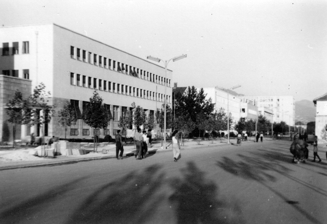 Kurz vor Titograd trafen wir auf Asphalt und kamen schnell in die Stadt. Titograd besitzt einen neuen Teil mit großen Wohnblocks und üppigen Bauten für Zentralkomitee der KPJ, Bank, Post und einem sehr luxuriösen Hotel. Diese Prachtbauten stehen alle an einer breiten Straße, die abends von Bogenlampen beleuchtet wird. Wie uns ein Deutscher sagte, den wir auf der Straße trafen und der in Cetinje eine Fabrik aufbaut, haben diese Häuser deutsche Kriegsgefangene aufgebaut.