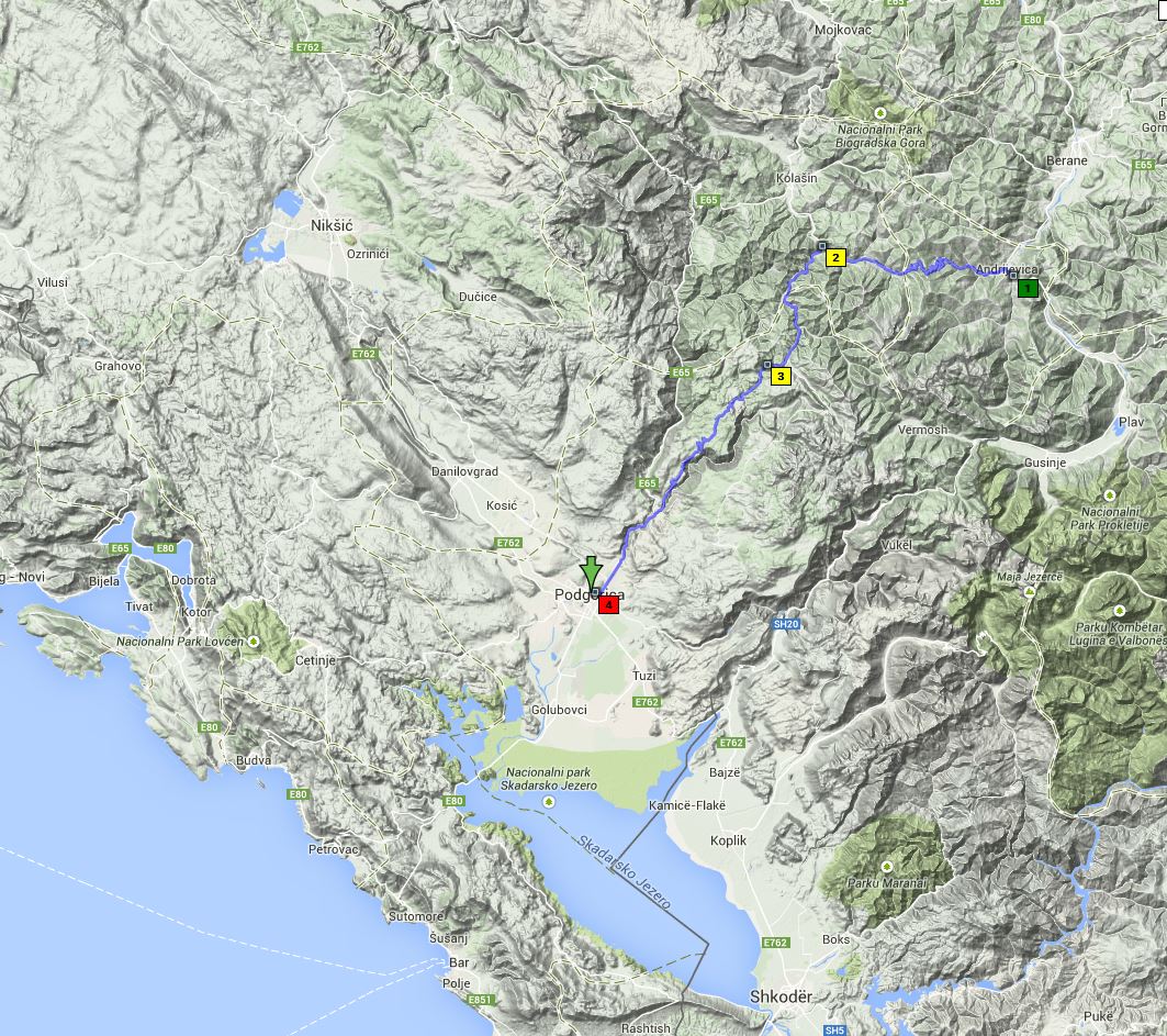 Nach dem Essen und Packen fuhren wir 9.30 Uhr ab. Wir mussten uns beim Hinauffahren auf die Straße gegenseit g unterstützen, da die Steigung sehr steil war und viele Steine auf dem schmalen Pfad lagen. Im Lim-Tal, das allmählich etwas weiter wurde, fuhren wir bis Andrijevica‚ einem Städtchen mit vielen holzgedeckten Häusern, die ihm ein altes und verträumtes Aussehen geben. Es liegt von Bergen umgeben am Zusammenfluss dreier Gewässer.