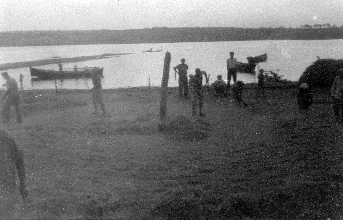 Als wir in Nin angekommen waren, es liegt direkt am Meer auf der Spitze der Halbinsel von Zadar, haben wir unsere Maschinen am Rande des Dorfes abgestellt und einen Rundgang angetreten. Wir fanden die Leute hier gerade beim Dreschen. Der Dreschvorgang ist sehr primitiv (Abb. li.), und es war für uns sehr interessant einmal zuzusehen. In der Mitte einer kreisrunden, glatten Fläche steht ein dicker Pfahl, um den man 2 oder 5 Pferde laufen läßt. Dabei treten sie aus dem ausgebreiteten Garben das Korn. Nach einiger Zeit wird dann das Stroh abgesammelt und das Korn mit den Spelzen zur Mitte gefegt. Dort wird es in Säcke geschaufelt und bei geeignetem Wind gesaubert. Als wir uns nach den romischen Bauten bei den hier beschäftigten Leuten erkundigten, erbot sich ein Kroate, uns zu führen. Es waren nur noch Reste eines Tempels zu sehen (korinthisches Kapitel und Reste der Mauern und Säulen). Auch eine alte in byzantinischem Stil erbaute, kleine Kirche zeigte er uns.